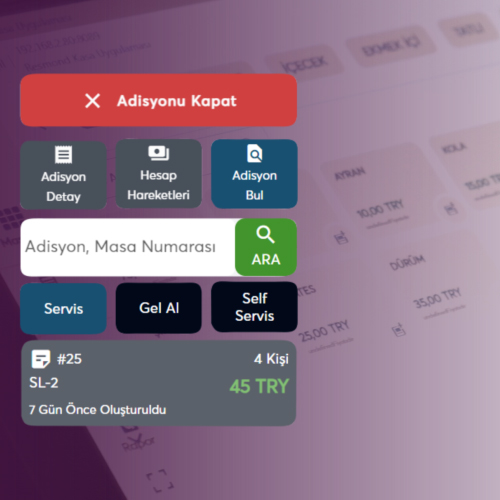 Resmond sayesinde siparişlerinde karmaşa olmadan ve zamanında ürünler hazırlanıp servis edilebiliyor. gel al siparişler sırası ile zamanında hazırlanıyor. En önemlisi ödeme esnasın ürün bazlı veya tutarsal olarak ödemeler takip edilebiliyor. Yapılan işlemlerin tama gün sonunda özet yada detay olarak raporlanıyor.